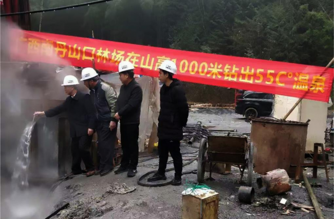 “快来看啊,出温泉了!”,“在山高1000米钻出59 C°温泉啦!!”2020年12月20日,正值气温寒冷时节在海拔高达1000米的南丹山口林场山上,一股异常清澈温泉在群众欢呼声从井口“哗哗”冒出,四周腾起一团团雾一样的热气……这是广西建业在强化科技创新中又一个突破。该高山温泉井的勘查成功,创广西首个高山森林式旅游度假与康养温泉。这是广西建业牢固树立“科技至上,创新驱动”的理念的结果。对温泉对当地旅游经济、地热温泉洗浴等方面有积极的推动发展意义。将为广西的旅游度假与康养项目建设作出更多更大的贡献!