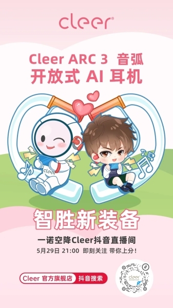 5月29日晚上9点,抖音搜索【Cleer官方旗舰店】,一起快乐畅聊!