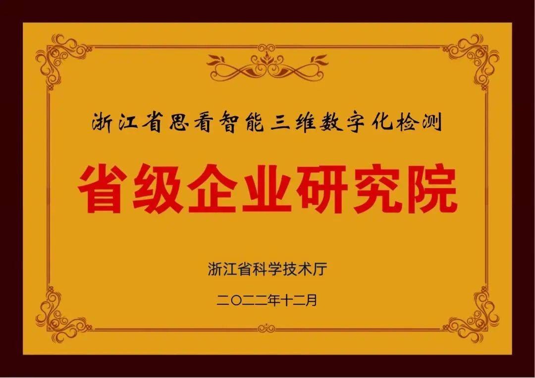 思看科技研发中心于2020年被认定为省级高新技术企业研究开发中心,经过两年的建设和发展,为了为了进一步促进技术创新,增强公司在国内外市场的竞争力,公司成立了思看智能三维数字化扫描检测企业研究院,并于2022年被浙江省科学技术厅认定为“省级企业研究院”。