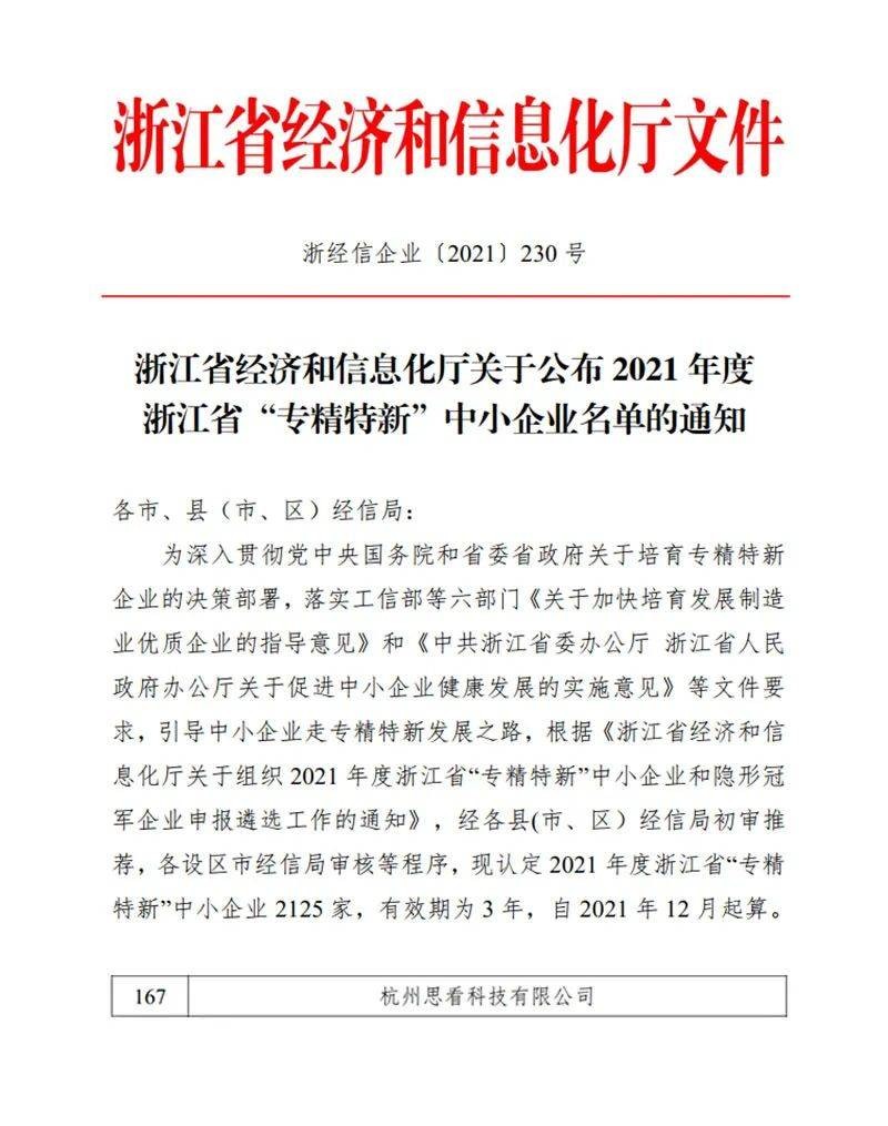 思看科技获评第四批专精特新小巨人企业,凭借多年来在智能视觉检测领域的专业深耕、自主研发实力和傲人的市场表现,顺利通过国家工业和信息化部对企业培育的筛选审核,成功入选。这也是继入选“2021年度首批浙江省专精特新中小企业”名单后,思看科技“专精特新”之路的另一权威认定。