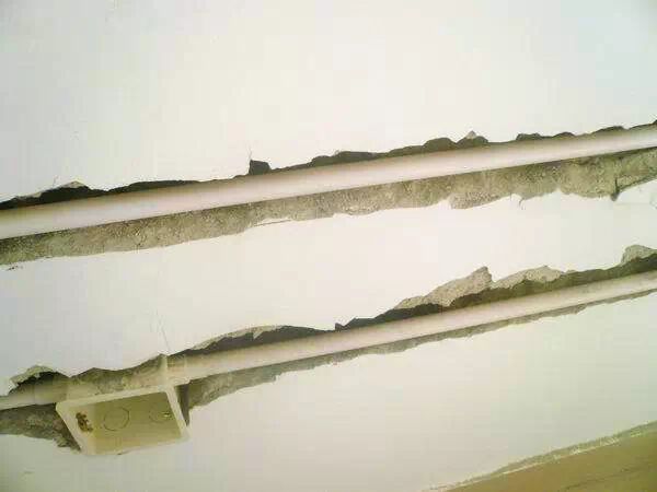 现象:暗埋管线就必须在墙壁和地面上开槽,才能将管线埋入。少数工人在进行开槽操作时野蛮施工,不仅破坏了建筑承重结构,还有可能给附近的其他管线造成损坏。