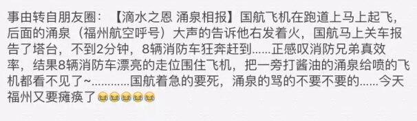 面对突如其来的泡沫,福州航空依旧大气凛然。在其官方微博上,做了如下描述: