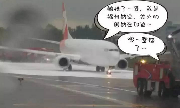 但不幸的是,消防车的消防水炮首先对准的不是国航飞机,而是报告险情的福州航空航班。福州航空欲哭无泪。草田策划!有网友描述,福州航空飞机被泡沫喷的都看不见了。更有网友调侃求福州航空机组的心理阴影面积。