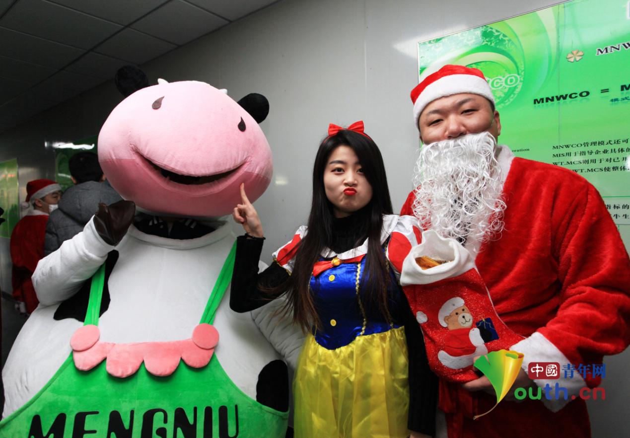 20名身穿圣诞节日服装的大学生参观蒙牛工厂中国青年网记者 王婷婷 摄