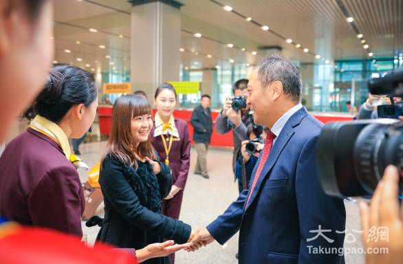 天津航空副董事长张聪迎接年度第1000万名旅客陈小姐