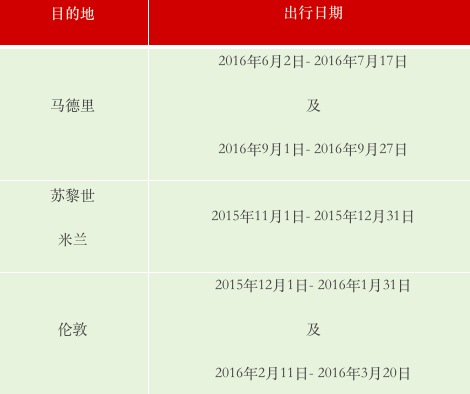据了解,国泰航空的本期快放‘价’率先推出马德里预售特别优惠草田策划并另外甄选三个欧洲热门目的地——苏黎世、米兰及伦敦,仅需2880元/人起便可于指定出发日期内往返以上任一目的地。