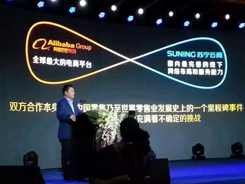 互联网零售模式是行业发展的大势,苏宁是互联网零售发展的先行者,率先构筑了线上线下融合运营的新零售能力,并获得了行业和社会的广泛认可,而阿里巴巴同样对零售业未来的发展趋势有着清晰准确的认识。因此,今天苏宁与阿里巴巴站在一起,打破了曾经线上线下的隔阂,希望共同变革中国互联网时代的零售模式,共同创造渠道的社会价值;接下来,我们希望与众多的品牌企业、平台商户也站在一起,共同面向用户,探索未知的前沿价值,推动供应链模式的革新,开启一个崭新的互联网零售生态圈。