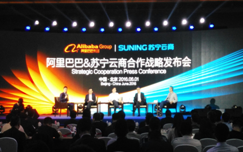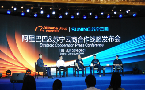 苏宁云商集团COO侯恩龙、阿里巴巴集团天猫数码家电事业部总裁印井联合发布与品牌商、中小型零售商和消费者共同构筑的三体贯通战略,并宣布发起成立百亿孵化基金。