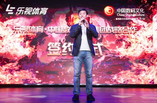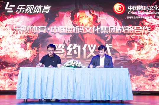 乐视体育经纪公司CEO卢山与中国数码文化集团总裁许东棋进行战略合作签约,标志着乐视体育和中国数码文化携手开发明星电竞战队经济业务的开启,通过组织比赛和线下活动,挖掘明星的更深入价值,开启明星跨界电竞合作新开端。