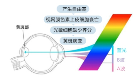 “蓝光族”接触蓝光频率高,在蓝光危害面前,自然首当其冲,既然常说蓝光有害,那蓝光具体有哪些危害?蓝光又是如何对我们产生危害?首先,蓝光辐射会抑制褪黑素分泌——一种会在黑暗的环境里产生的荷尔蒙。它的功能主要是在夜晚降低我们的血压、葡萄糖、体温,让我们可以有一个充分、舒适的睡眠。而蓝光的辐射会让褪黑素的分泌减少22%,严重影响我们的睡眠质量。不仅如此,由于蓝光辐射具有极高能量,因此,蓝光能直接穿透晶状体辐射视网膜,从而引起视网膜色素上皮细胞的萎缩甚至死亡。这种伤害不仅不可逆,长期以来还会引起晶体混浊,导致黄斑病变以及白内障。