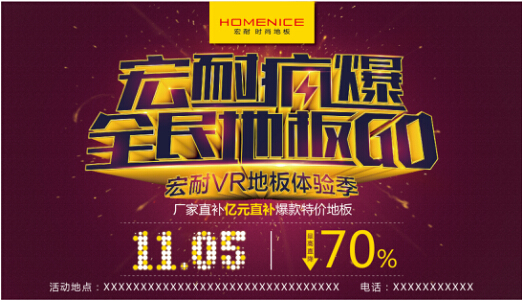 国庆已经结束,小伙伴们又进入了紧张忙碌的工作中了,在一片对假期短暂的哀嚎声中,小编却要告诉大家一个好消息,10月15日—11月5日期间,宏耐时尚地板已开启“宏耐疯爆全民地板GO”、“宏耐VR地板体验季”活动引爆阶段,并在11月正式启动2016年最重要的大型促销活动,届时,海量优惠让利根本把持不住,还有红包礼品送不停,让你彻底戒掉假期综合症。
