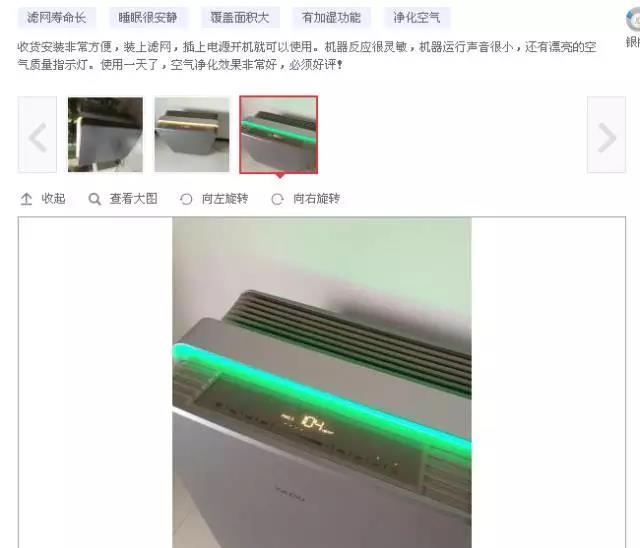 而更多的消费者在体验之后更倾向于产品的净化力度、静音程度及操作使用上。“净化效果好”、“超静音”、“净化速度之快”“APP手机智能操作”成为消费者的直观感受。“昨天晚上下单,今天中午就到了,赶紧用起来,外面重度雾霾啊?使用接近一小时后终于红灯变蓝了,净化效果不错”。