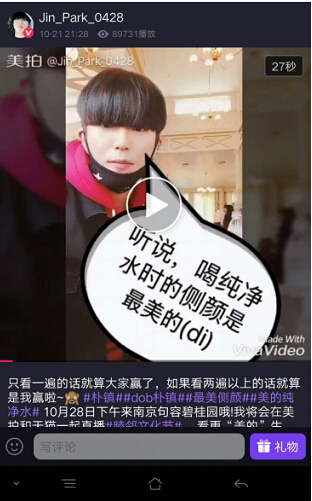 10月21日,韩国最具人气的街头舞团——DOB男团队长朴镇,在美拍平台上发放一条以最美侧颜为话题的视频,最美侧颜话题马上登上微博热搜榜前三,瞬间爆红网络。在20多秒的视频中,朴镇多次搞怪饮水,凸显出朴镇小鲜肉搞的可爱性格,深得粉丝热情追捧。