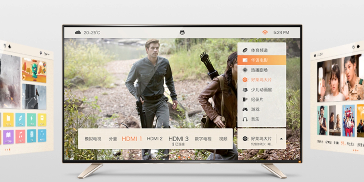 在众多的品牌里,小编还是比较欣赏联想17TV的设计。17TV采用的是三明治式的UI结构,将电视首屏按电视直播、视频点播和电视应用三个内容设计成三个独立界面,使用空鼠左右箭头按键轻松找内容。另外17TV还有一个语音声控找内容的设计也比较独道,这些设计的出发点就是让智能电视更好用,更易用,互动性更强。