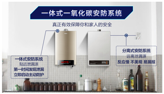 与此不同,海尔WPT燃气热水器配备的一体式一氧化碳安防系统,监测设备紧邻泄漏源,不仅能够在第一时间就能发现一氧化碳泄漏,而且24小时监控室内的一氧化碳浓度。不管是燃气热水器还是燃气灶造成的一氧化碳泄漏,只要监测系统发现室内空气中一氧化碳含量超过150PPM,就会立即产生蜂鸣报警并自动关闭燃气管路,主动启动风机排出废气确保安全,即使冬天厨房(厨房装修效果图)门窗紧闭,也能将一氧化碳中毒的风险降到最低。