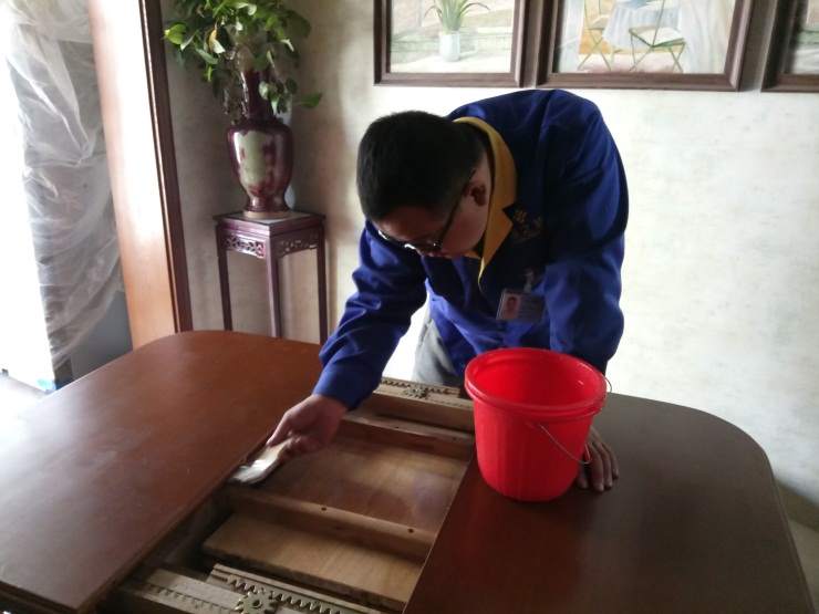 在治理过程中,无论是对污染物的判断,通俗的讲解,熟练的施工,还是对任何一个细节的认真处理,甚至熟练拆卸抽屉,都让我看到了一个专业治理公司该有的态度。当倒出来一瓶叫无光触媒的原料时,工程师开玩笑说,您看,无色、无味、无毒,透明,可以喝!说着真尝了一口。(此处配上小岳岳表情表)
