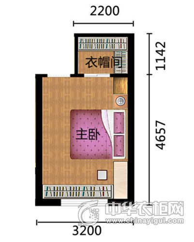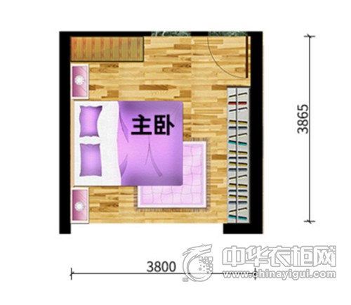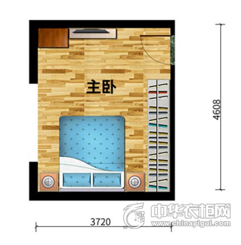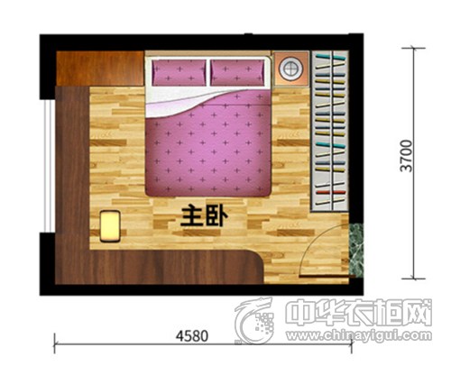 卧室空间小,没有复杂的组合柜,采用最基本的布局。床两端是床头柜,左边是衣柜,衣柜到顶设计,对小空间实现最大利用。在空间有限的情况下,可充当客卧。
