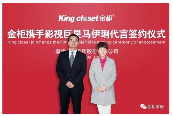 2017年1月9日,在上海香格里拉大酒店(酒店装修效果图),金柜家居正式签约影视巨星马伊琍担任其品牌形象代言人。这是金柜家居创立近十八年来首次启用品牌代言人,这一举措标志着金柜家居品牌建设将迈向新的高度。