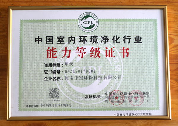 为加强我省室内环境净化治理队伍建设,促进净化治理行业标准化发展,我省全面启动中国室内环境净化行业河南地区企业能力资质申报工作。所有从事室内环境净化治理的相关企业均可持相关手续到省监督检验中心参与资质评定,经过审核后,由中国室内环境净化行业联盟和省监督检验中心联合颁发《中国室内环境净化行业能力等级资质证书》。该证书是唯一获得全国12个省净化治理行业协会互通互认的行业资质,全国通用。