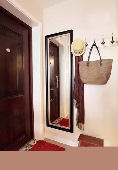 玄关里摆穿衣镜是个很合适的位置,在玄关合适的位置挂个全身镜,出门前稍作打扮,避免蓬头垢脸的跑到外面去“抛头露面”;同时镜子摆在玄关还能充当装饰作用,让狭小的玄关显得更宽阔,让客人进门后感觉更大气舒适。但不能正对门,这是一种风水习惯,当然如果你并不介意风水的话就可以按照自己的喜好来进行安装了。