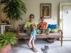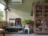 上了年代的长椅做沙发,放上日式的沙发垫,也毫无违和感嘛~捡来的盆盆灌灌们,好一点的就成了花盆,不好的就只能放到沙发底下当垃圾桶了。墙上的神秘壁画、具有文艺气质的抱枕以及那些捡来的花盆,混搭范儿十足啊!