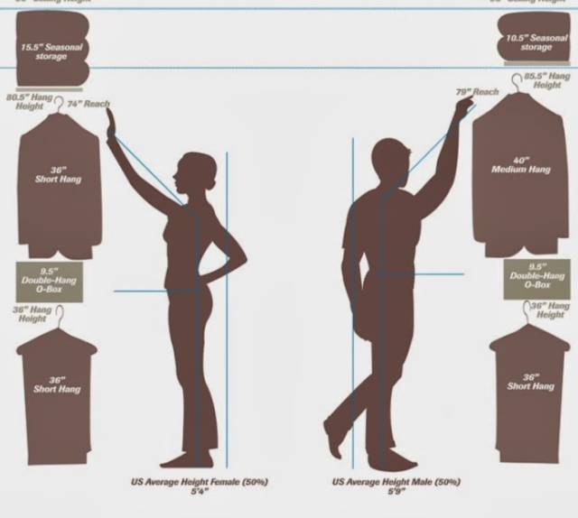虽然下图尺寸是美国家庭数据,但和人体高度相对应比例是可以参考的。