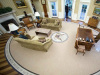 美联社记者注意到,椭圆形办公室从地板到天花板都发生了变化:奥巴马时期选用的、边缘印有5名美国历史名人名言警句的地毯被撤换,取而代之的是一块边缘由花环点缀的金色地毯;窗帘同样选取金色,替换了之前的深红色窗帘;办公室还换了一些新家具,但名为“坚毅桌”的总统办公桌被沿用。