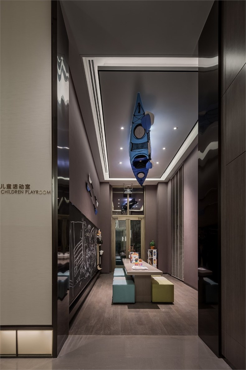 儿童活动区的设计使用较欢快的色彩,黑板、帆船等元素的加入,仿佛是又回到了当年的课堂,梦想中的童年。