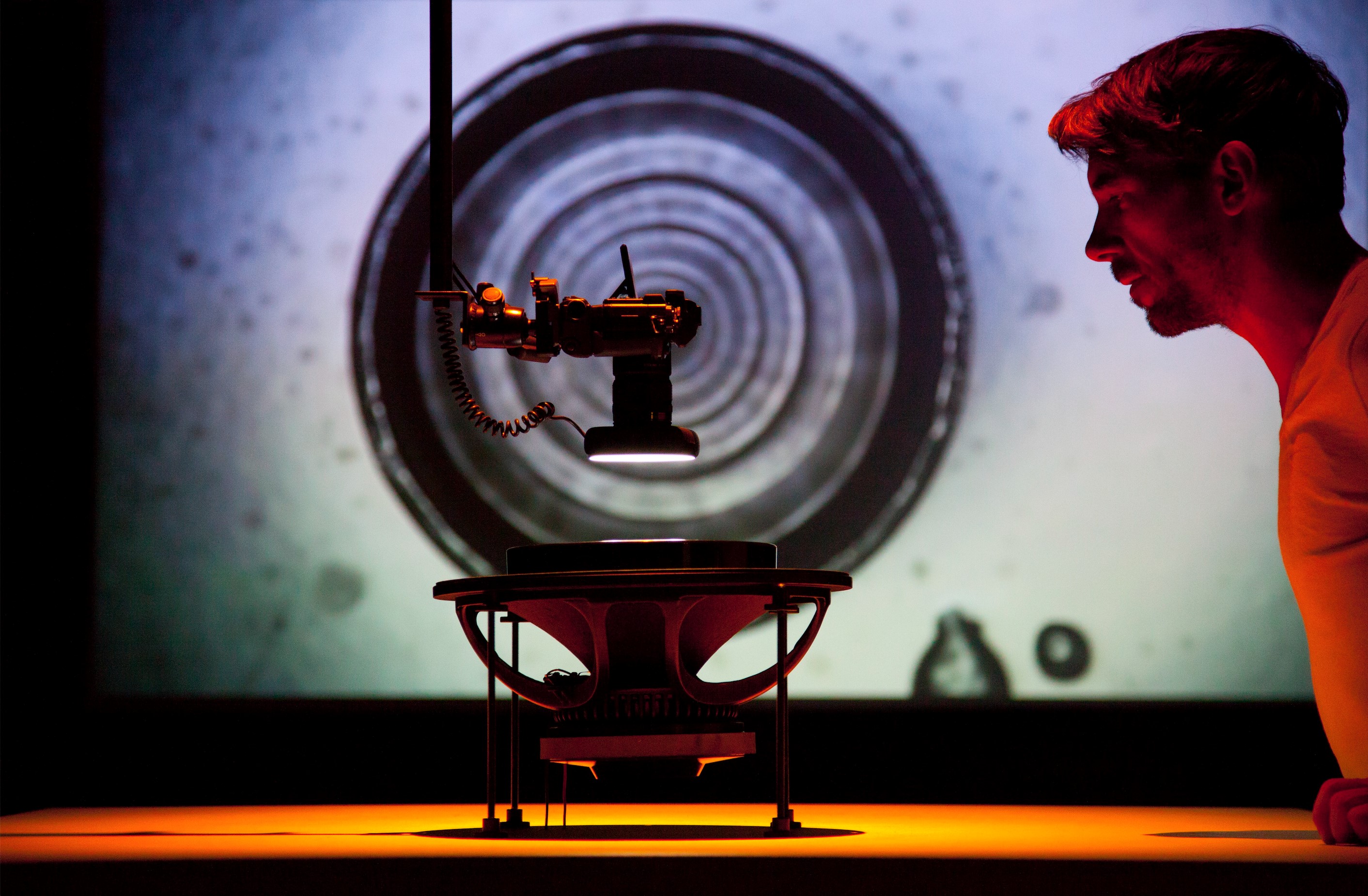是一个水盘于扬声器上的安拆,声波正在水面上会构成图案,动态地变换成斑斓又的交错式艺术做品,图案会被拍摄并投射到墙上。这做品了天然世界的混沌形态取数学定律的次序,它也具有改变世界设法的能力,就像水盘融入成为安拆的一部门,同时改变了不雅众对声音体验。