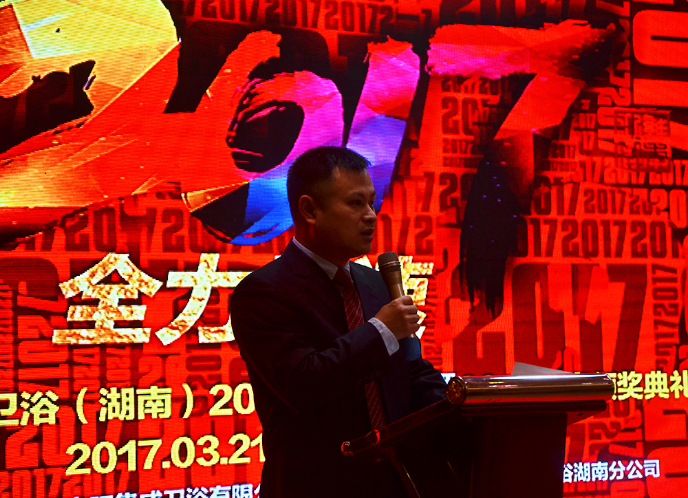上午9点,大会正式拉开帷幕,申旺集成卫浴常务副总颜智义先生对正在场嘉宾进行了热诚的问候,并做了热情弥漫的致辞。致辞中提到了“湖南区域专卖店正在客岁的发卖业绩中实现翻番的不俗成就,并暗示2017年公司将继续贯彻施行《办事营销·托管》的申旺独创营销系统!”