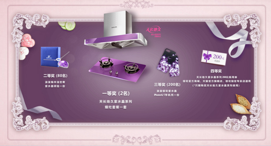3月20日-4月20日期间,参取《爱,酱紫料理》,通关料理逛戏还可参取抽,一等海枯石烂系列紫水晶烟灶套拆,二等施华洛水晶项链、三等浪漫樱花紫水晶iPhone6/7手机壳,四等海枯石烂系列产物200元抵用券,倾情好礼,送给心尖上的她。