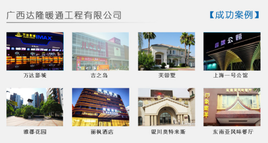 广西达隆暖通工程无限公司是一家空调设想、发卖、安拆、售后办事于一体的专业化空调公司,为商务楼、餐饮文娱、宾馆酒店、商场超市、病院/教育/展厅、厂房、、家庭等供给地方空调处理方案的空调企业。广西达隆暖通工程无限公司温暖提示: