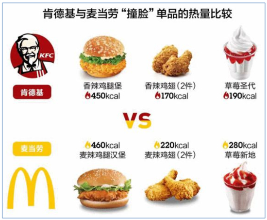 由上图能够看出,正在撞脸单品的热量方面,肯德基做的比麦当劳要好。