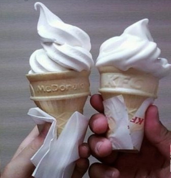别的,正在奶成品方面,据网友爆料,肯德基是用奶粉冲制的,麦当劳是纯奶成品。买咖啡送的奶,肯德基送的是奶精,麦当劳送的是小杯淡奶。