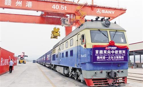 △6月1日,江西赣州首趟中欧双向班列(俄罗斯—赣州港—吉尔吉斯斯坦)发车。杨晓明摄(发)