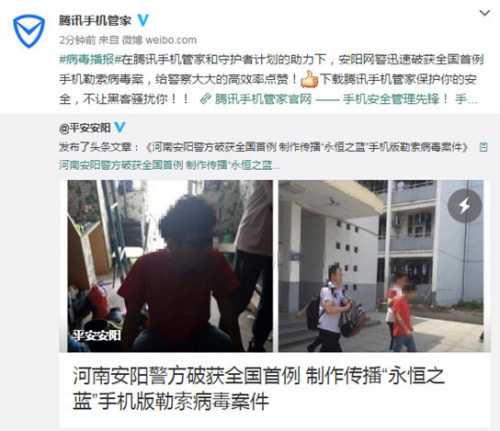 针对此次手机病毒案件的影响,腾讯平安反诈骗尝试室担任人李旭阳暗示,虽然此次手机病毒的现实风险无限,但其“定制病毒、传布病毒、传染并用户”的犯罪模子却给我们带来了新的警示。一方面,继WannCry病毒后,这种新的体例将成为常态,对用户上彀平安提出了新的挑和,也需要平安防御软件具备更快一步的手艺响应能力。另一方面,平安企业需要承担更多的社会义务,正在积极为用户供给靠得住防御东西同事,能够手艺劣势取警方快速联动,从根源给犯罪份子以冲击,而不是一味放大宣传以至打单用户。