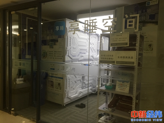 7月14日下战书,中新经纬客户端(微信公家号:jwview)来到位于中关村大街中钢广场创业地下二层的“享睡空间”体验店。