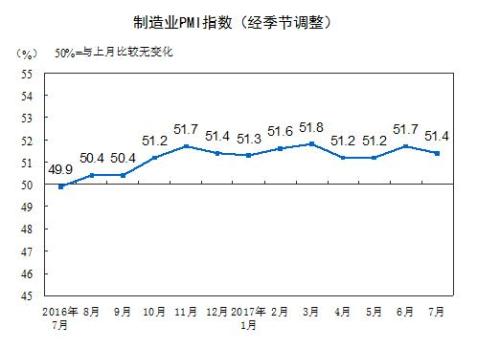 中新网7月31日电 据国度统计局网坐动静,7月份,中国制制业采购司理指数(PMI)为51.4%,比上月小幅回落0.3个百分点,取上半年均值根基持平,制制业总体走势平稳。
