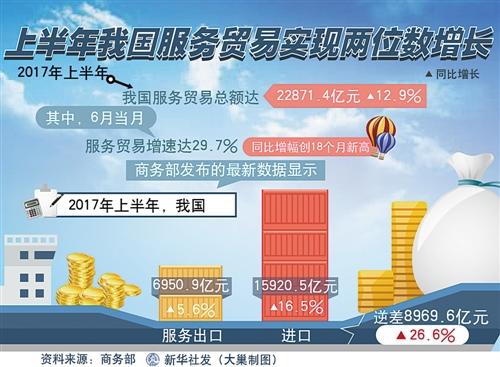 本报8月4日讯 记者冯其予、生曹曼庭报道:商务部4日发布数据显示,本年上半年,我国办事进出口总额22871.4亿元,同比增加12.9%。此中,6月当月,我国办事进出口额4475.1亿元,同比增加29.7%,同比增幅创18个月新高。