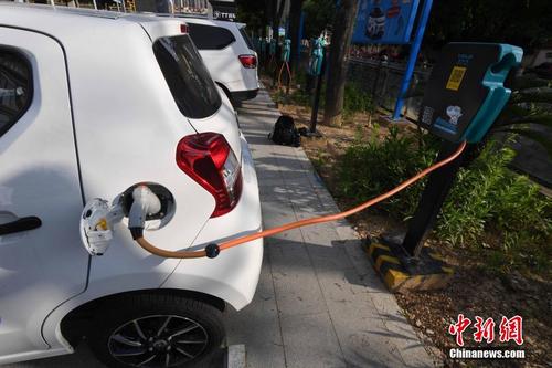 图为福州晋安区南平东稻田创业小镇数辆共享汽车正正在充电。刘可耕 摄 破解“泊车难” 摸索城市内泊车费优惠