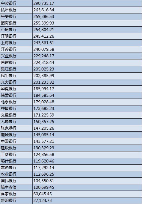 31家银行工资单!宁波银行、杭州银行、安然银行占领前三强