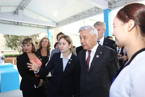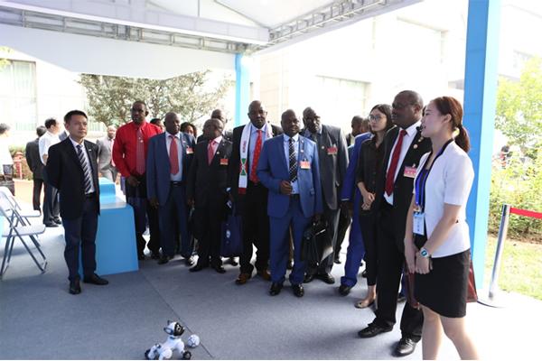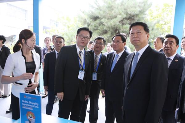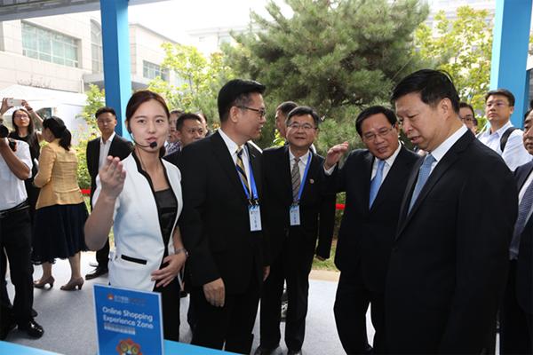 中联部部长宋涛(左前一)参不雅苏宁聪慧展区
