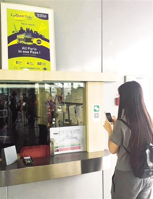 正在巴黎塞纳河畔的船埠,旅客能够通过微信扫码订票并进行参不雅征询。图为一名旅客正正在用微信扫码。 本报记者 李鸿涛摄