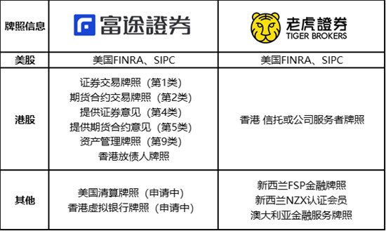互联网券商行业的竞争说到底是“资质牌照”与“产品技术”的竞争。老虎证券与富途证券均持有香港、美国多地牌照,具备多种资质。