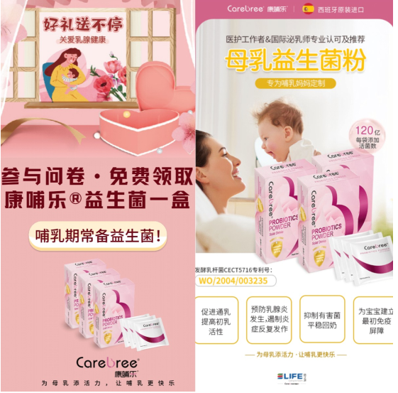 在“ 5月 20 日全国母乳喂养宣传日 ”来临之际,为了让更多妈妈提前了解哺乳期乳腺炎的风险诱因,体验到哺乳的幸福,康哺乐团队结合专业文献和书籍,与医护专家合作拟定了一场以“为母乳添活力,让哺乳更快乐”为主题的《哺乳期乳腺炎风险筛查问卷》活动,希望通过广泛筛查,普及哺乳期乳腺炎的预防措施,赠送产品的形式,为促进母乳喂养贡献力量,让妈妈们安心快乐的度过哺乳期!