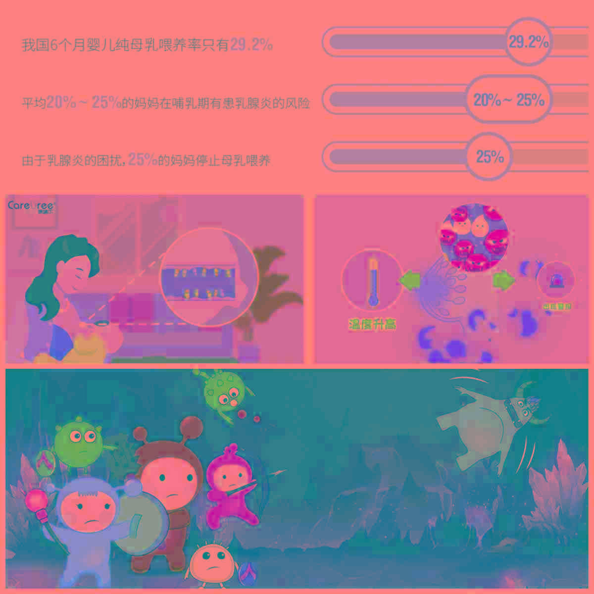 2019 年 2 月,据《中国母乳喂养影响因素调查报告》显示,中国婴儿 6 个月内纯母乳喂养率为 29.2% [1];根据美国、新西兰等国家的调研数据,约 20%~25% 的哺乳期妇女有患乳腺炎的危险 [2];25% 的妈妈因为乳腺炎的痛苦症状而停止母乳喂养 [3],哺乳期乳腺炎也因此成为了母乳喂养过程中的主要障碍。