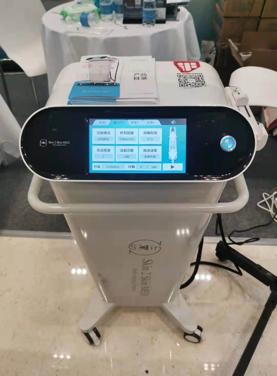 5月8日下午,简自美医疗美容姜海燕院长在《眼周年轻化的注射美容和美塑疗法的联合》实操演示中,采用Skin 2 Skin Med颜层水光仪结合颜层水光疗法作为教学素材。在姜院长的精彩演示中,大家现场直观地感受到这台荣获CFDA认证的颜层水光仪不仅操作简单易上手,而且可以有效减少漏液,效果更佳。
