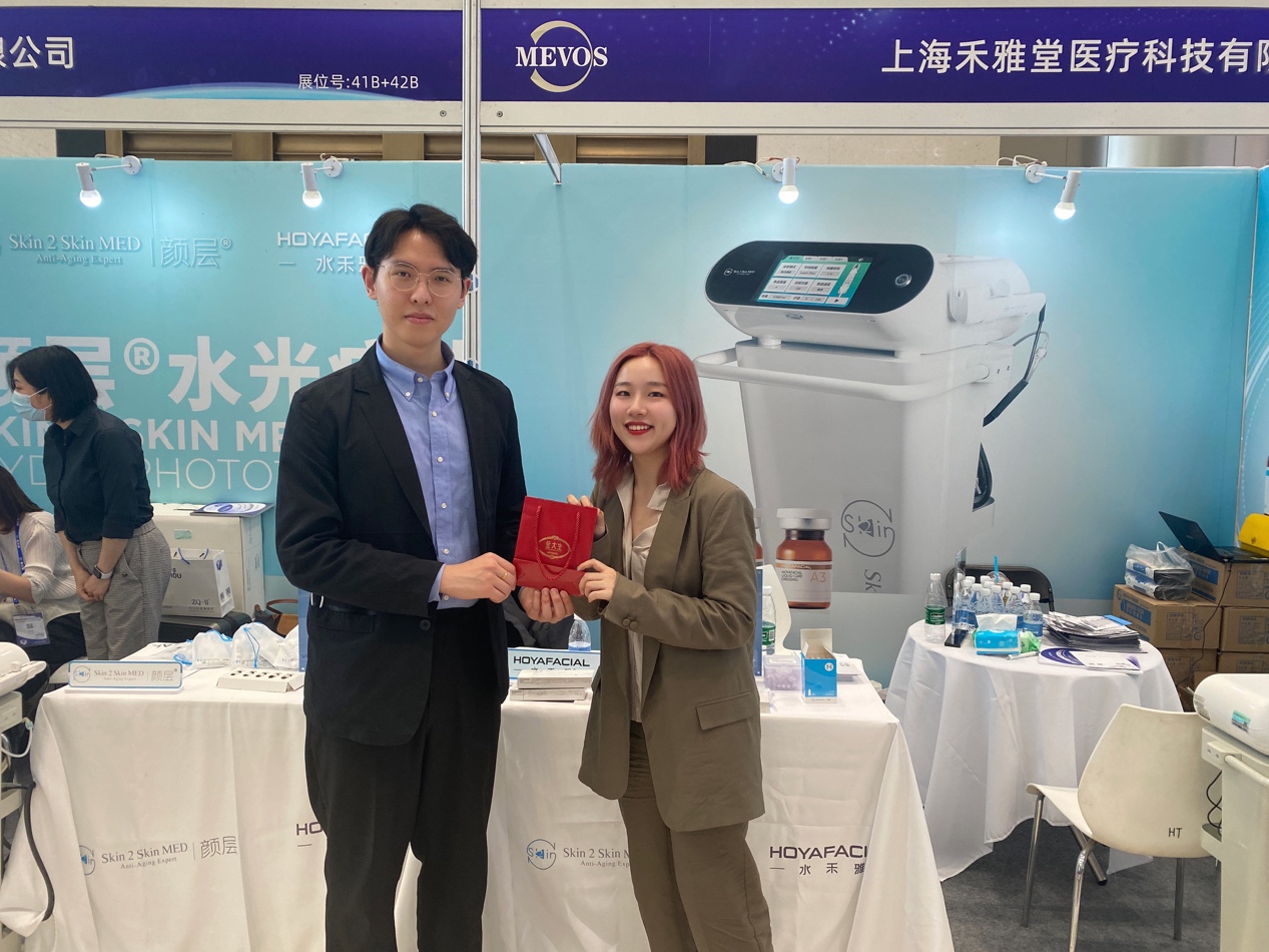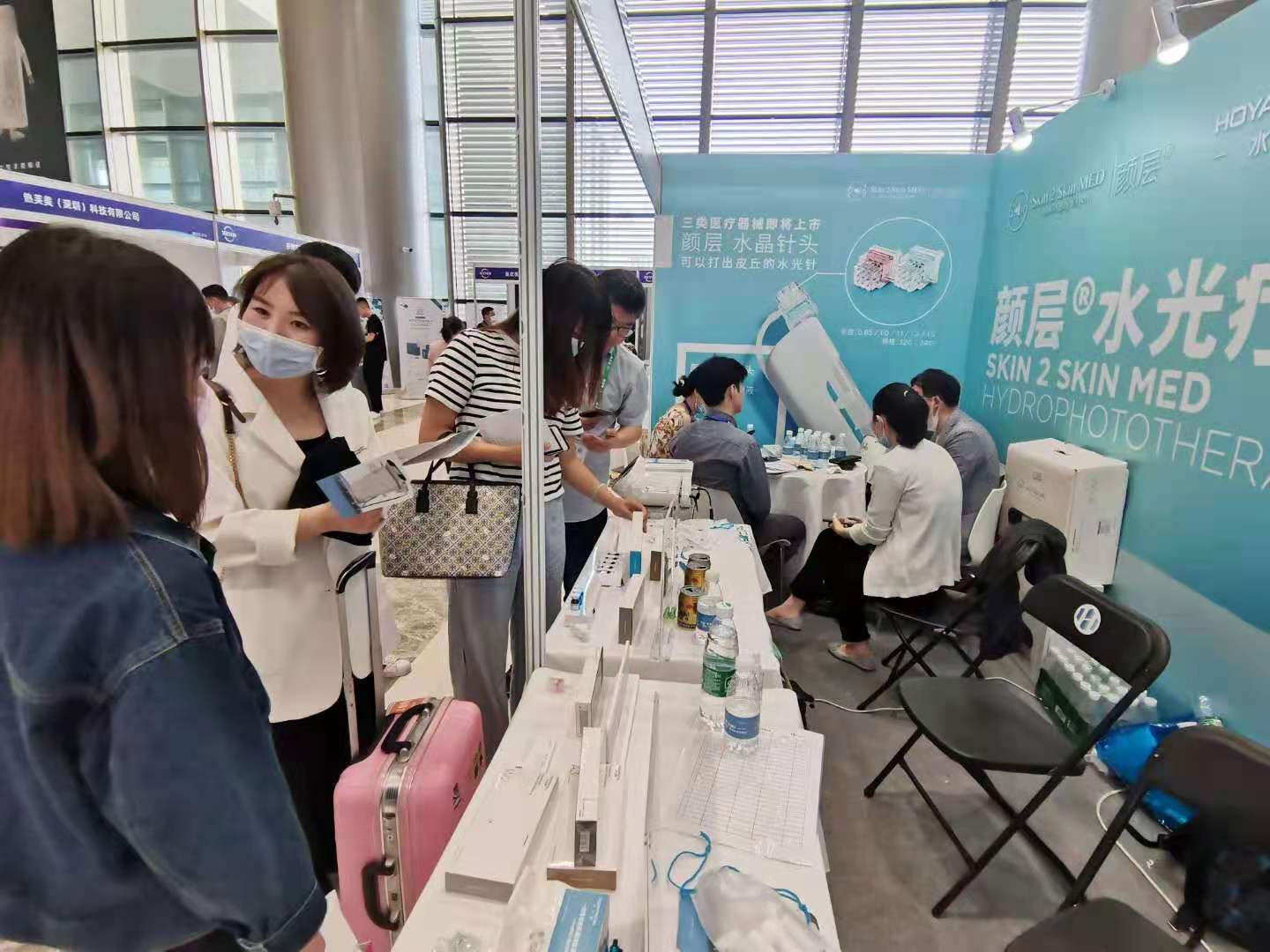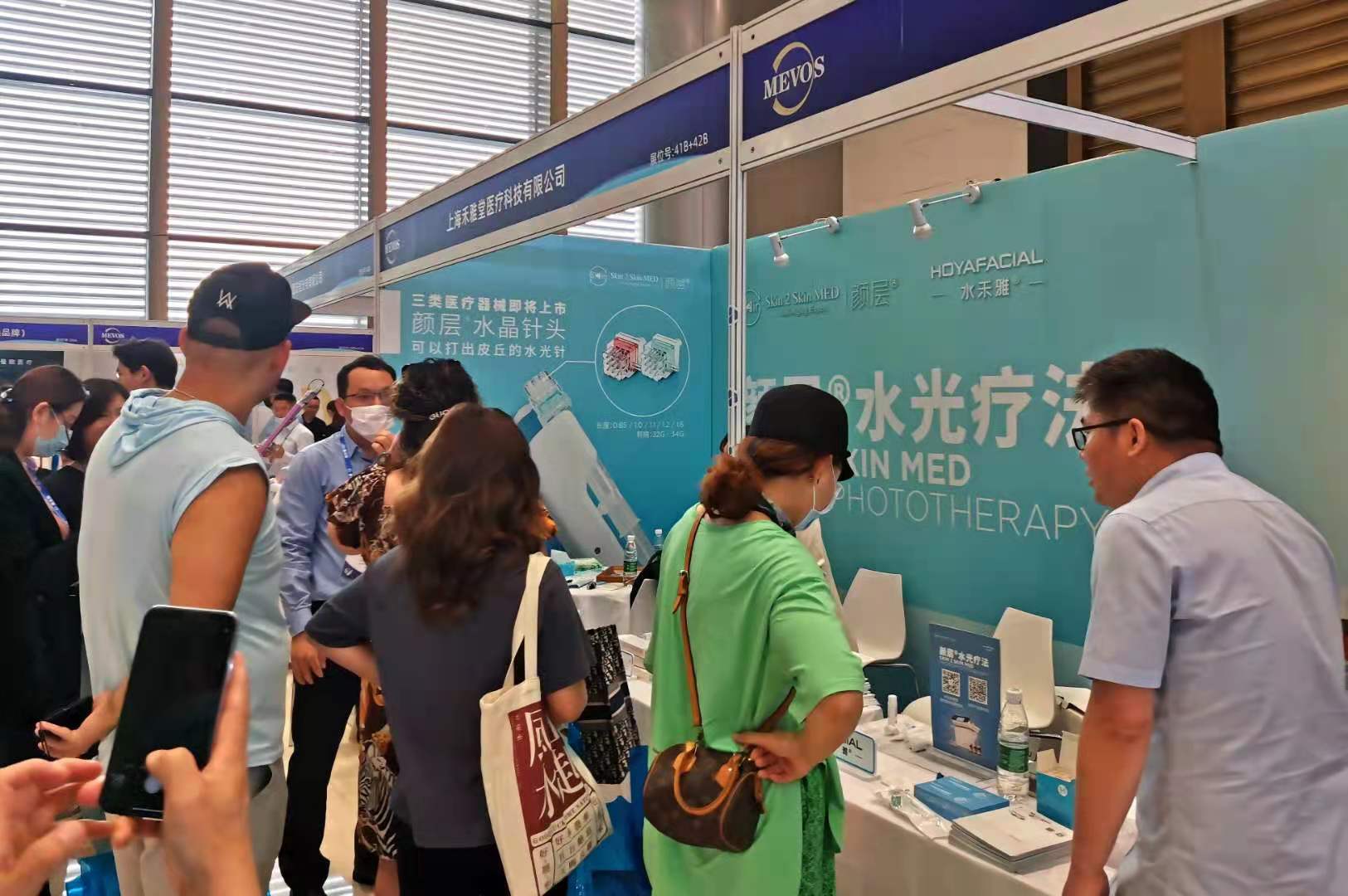 颜层水光仪、系列医美产品及产品资料等一经展出便获得众多参会代表的青睐与喜爱,大家纷纷驻足咨询,深度体验交流。