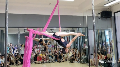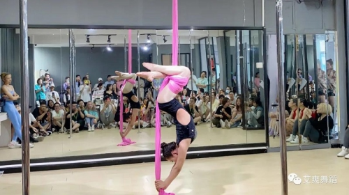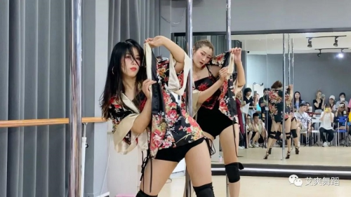在钢管上所做的每一个技巧,都是学员们日积月累的不断练习所呈现的。