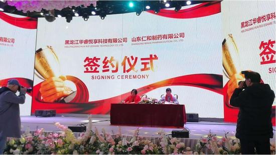 山东仁和制药有限公司董事长楚振刚、湖北丝宝股份有限公司总经理罗健、广东康绿宝科技实业有限公司副总经理顾伟哲、黑龙江飞鹤集团运营中心经理徐晓刚等企业家致辞,并与华睿悦享签署战略合作协议。